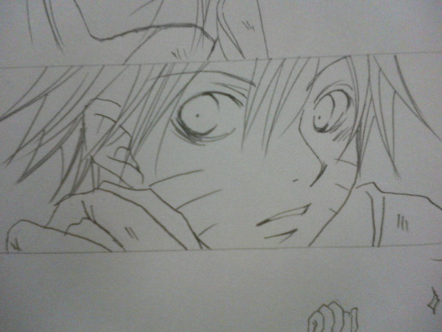 昨夜のお祝い絵ちゃは、アミダ合作とかだったんですが、一度目に描くキャラ(サスケOR ナルト)を決定。