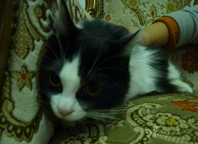 お猫様は三匹。キジの子が二匹と、白黒の子が一匹・・・。